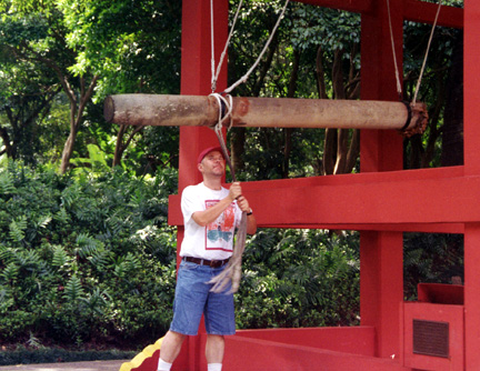 Ringing the temple bell outside the Byodo-In Temple on Oahu, 1994. I'm wearing a Figgs t-shirt -- a group no one has heard of.